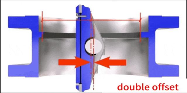 In a triple offset design, the sealing ring on the disc and the valve seat only make instantaneous line or point contact at full closure.